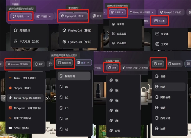 这是Flyelep AI与通用AI工具最本质的区别。在生成前,用户需要完成几个关键选择: